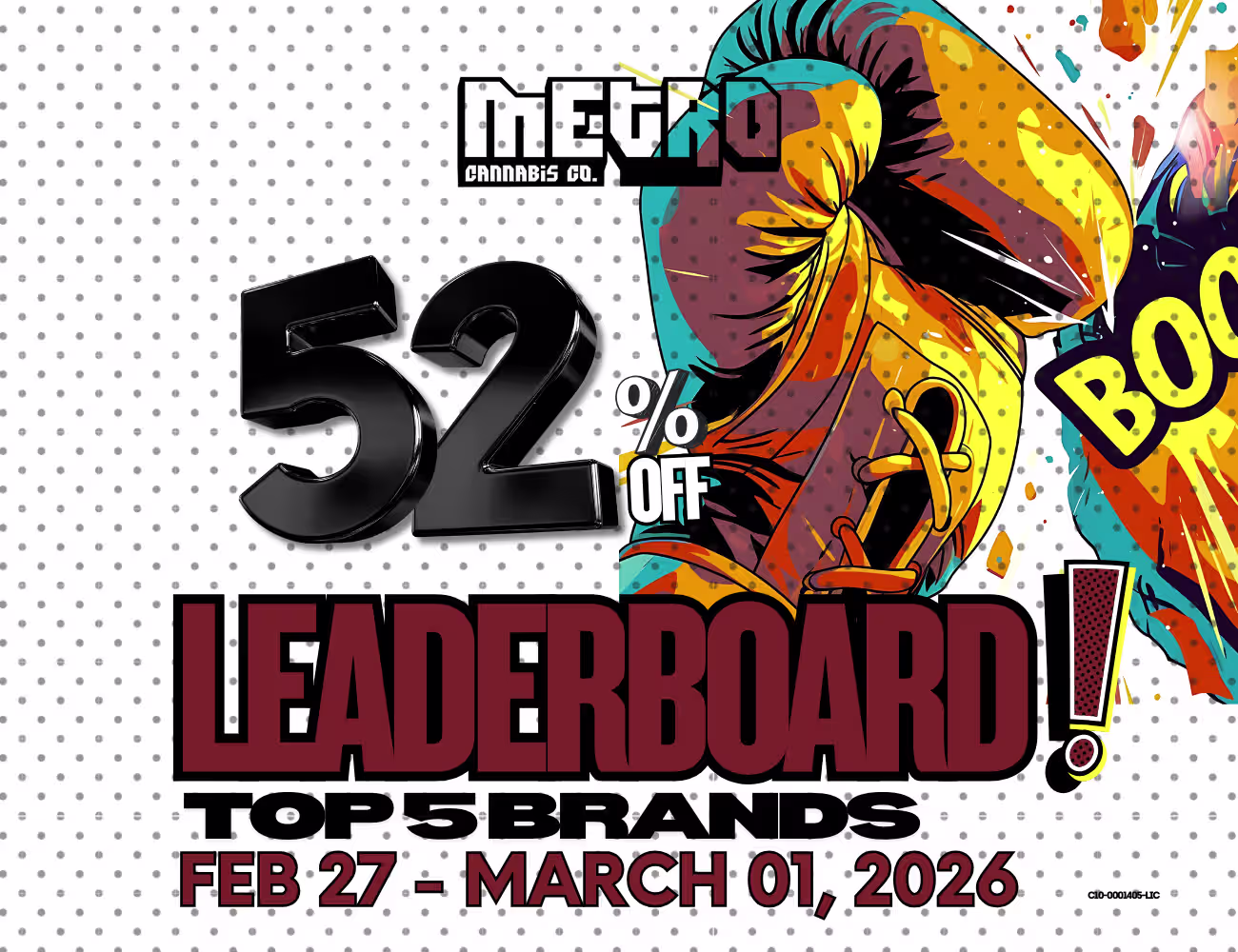 Shop Metro Cannabis’ Leaderboard Sale February 27–March 1, 2026 and save 52% on top-selling brands like CAKE, Claybourne...